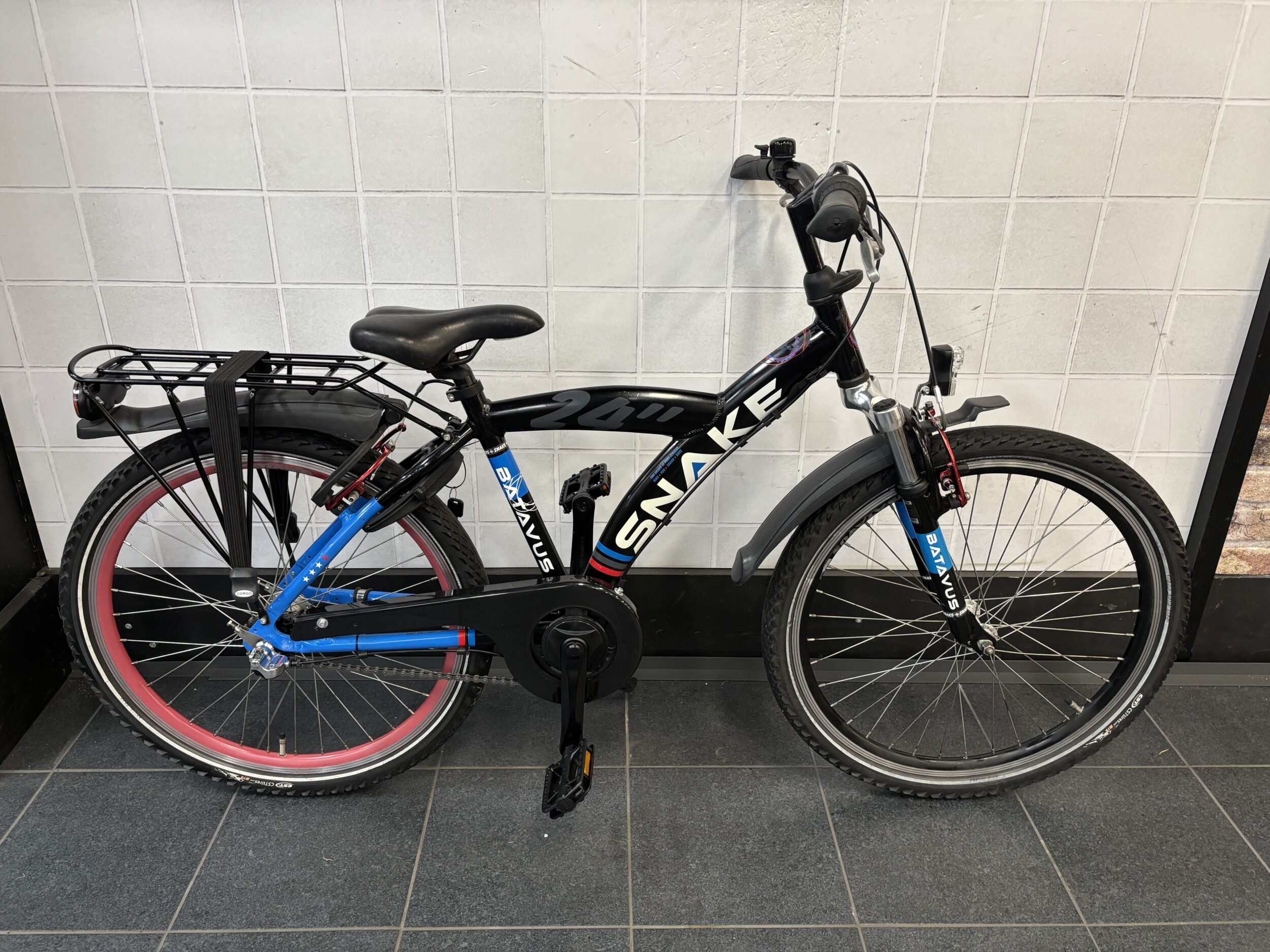49: De Batavus Snake 24 Inch jongens is een stoere keuze voor jonge fietsers die functionaliteit en een speels design waarderen. Deze kinderfiets is ideaal voor dagelijks gebruik, met een stevige bagagedrager en snelbinders wordt deze fiets nog praktischer. Met zijn robuuste frame en betrouwbare terugtraprem en handremmen biedt de fiets niet alleen comfort, maar ook veiligheid. De 3 versnellingen maken het berijden van deze fiets nog comfortabeler. De combinatie van functionaliteit en een speels ontwerp maakt de Batavus Snake een topkeuze voor jongens die graag opvallen en praktisch willen fietsen.