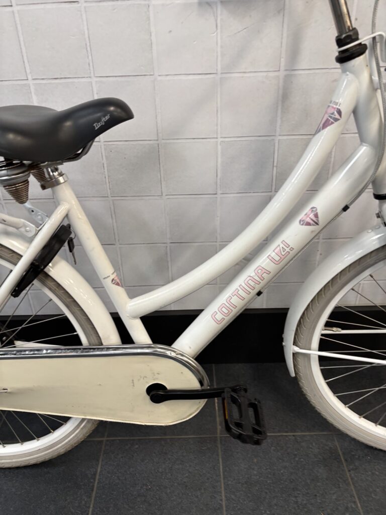 37: De Cortina U4 26 inch meisjesfiets is al jaren erg populair in Nederland. De ideale fiets voor de jeugd om met een kratje, dat eenvoudig te monteren is op de voordrager, spullen mee te nemen naar school.