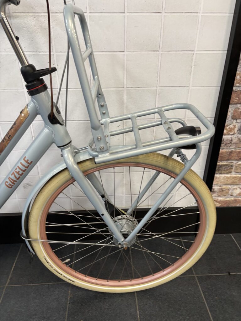 125: De Gazelle Heavy Duty is een hippe en praktische transportfiets. Geschikt voor school, woon-werkverkeer en dagelijks gebruik. Met de stevige voordrager neem je eenvoudig veel bagage mee. Dankzij de dubbele standaard en stuurvergrendeling kun je de fiets veilig parkeren, ook bij zware belading.