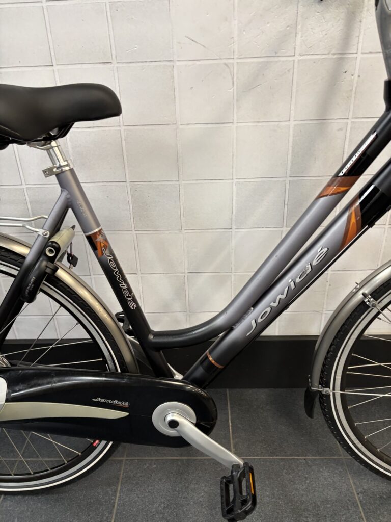 84: Deze tweedehands Jowide damesfiets is de juiste keuze voor mensen die kiezen voor kwaliteit voor de juiste prijs. Deze 28 inch damesfiets beschikt over 8 versnellingen, vering in de voorvork en verlichting op naafdynamo aan de voorzijde.